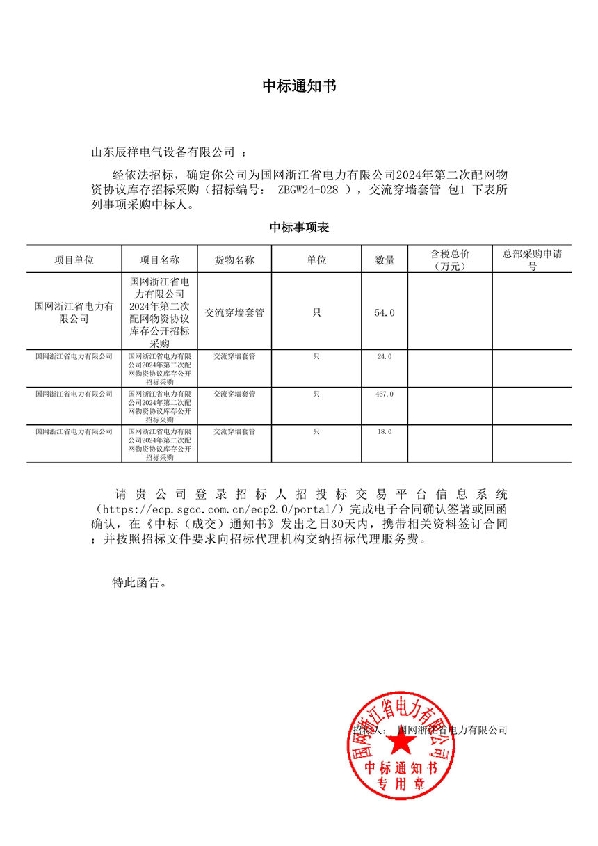 2024.11.29 交流穿墻套管中標(biāo)通知書