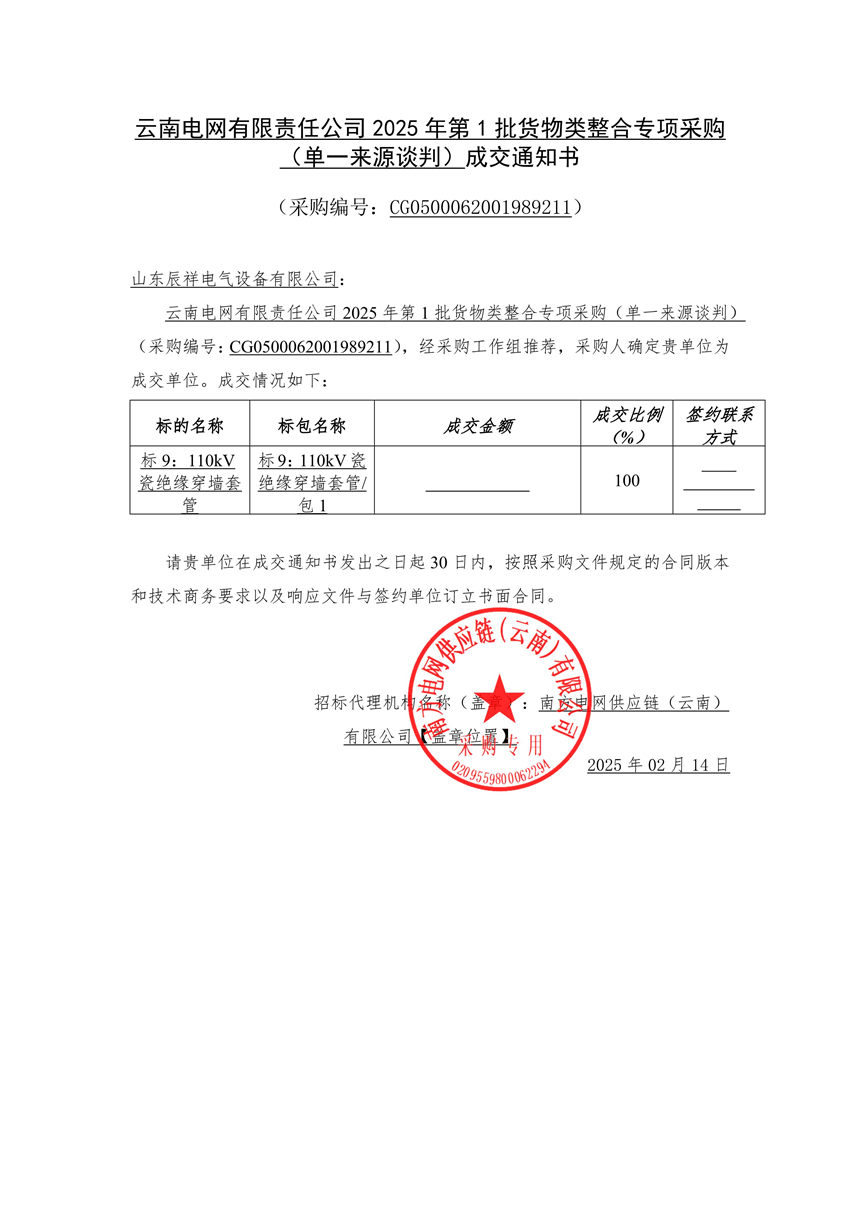 2025.02.14 110kV瓷絕緣穿墻套管中標(biāo)通知書
