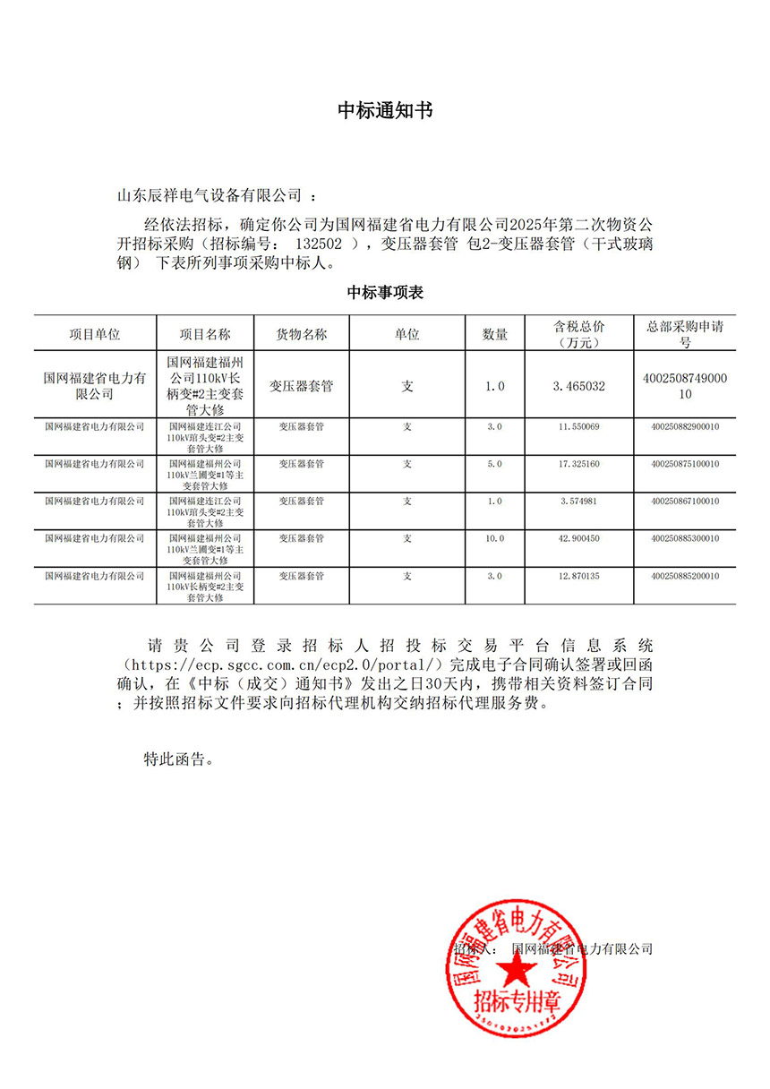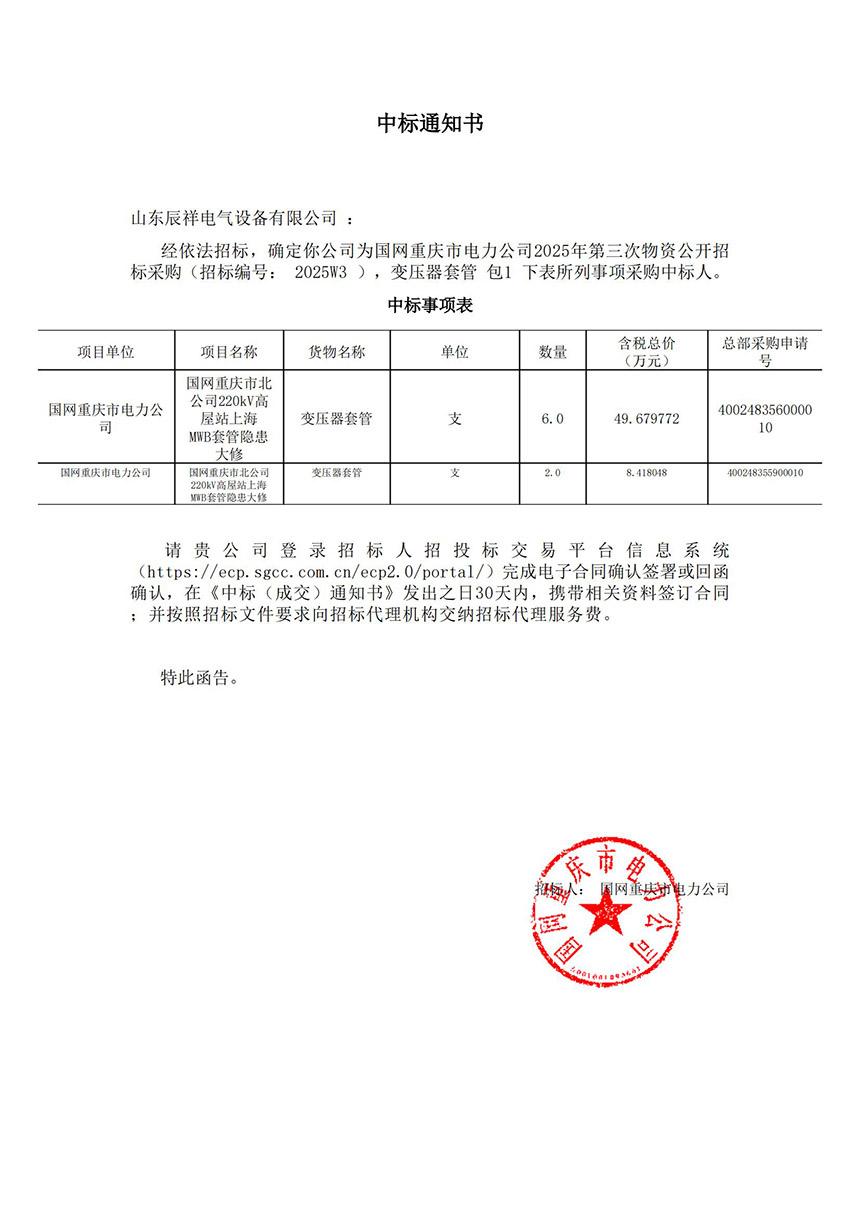 2024.12.18 變壓器套管中標(biāo)通知書